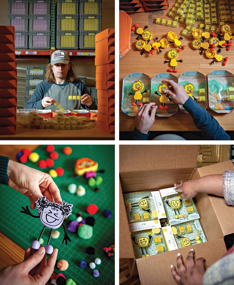 Now he can walk from the restored former grocery store in Starkville where he lives to his own business downtown, located in an old theater that hasn’t shown a movie since the 1960s. Instead of helping engineer the latest electric car models, Walker and his team at Glo design and sell children’s toys. Lots of them.